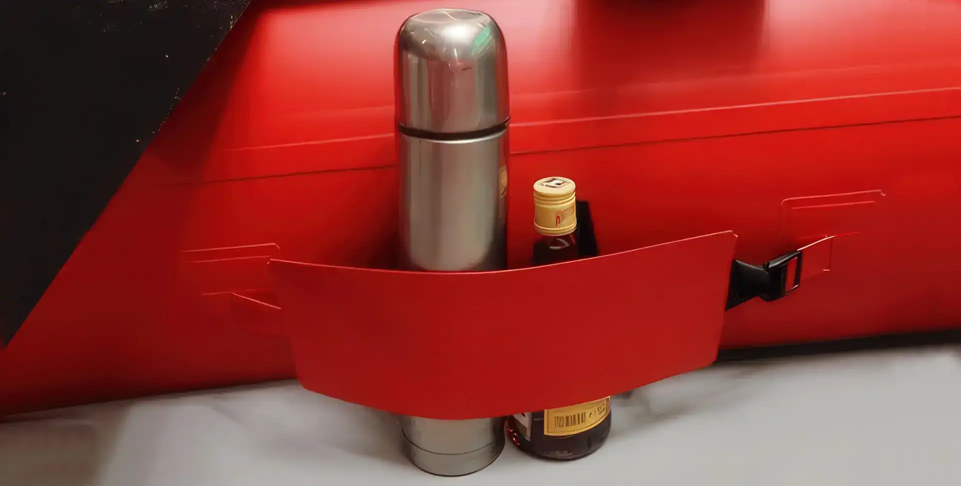 Удобный регулируемый держатель устанавливается в кокпите для фиксации термоса, бутылок с водой или коробок с приманками.